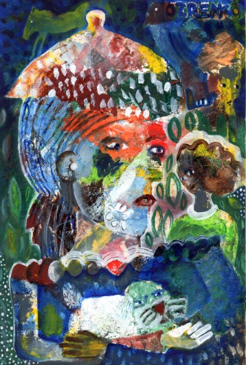 Prevazišao si tradicionalno polazište u slikanju ljudskog lica. Rekao si mi da, te likove na svojim slikama, doživljavaš kao složene metafore karaktera i ljudskih odnosa, svedene na reduciran gest i mimiku.